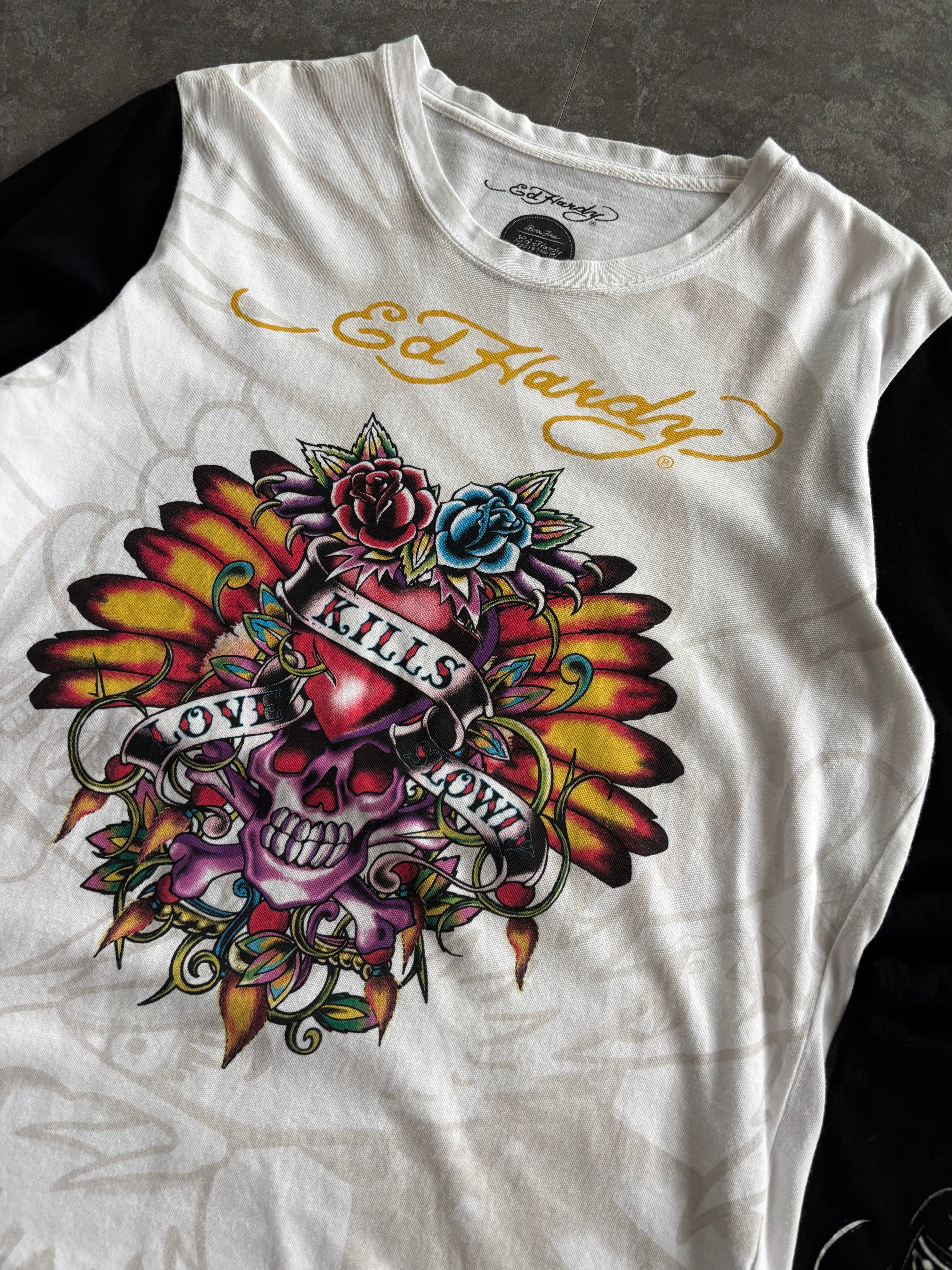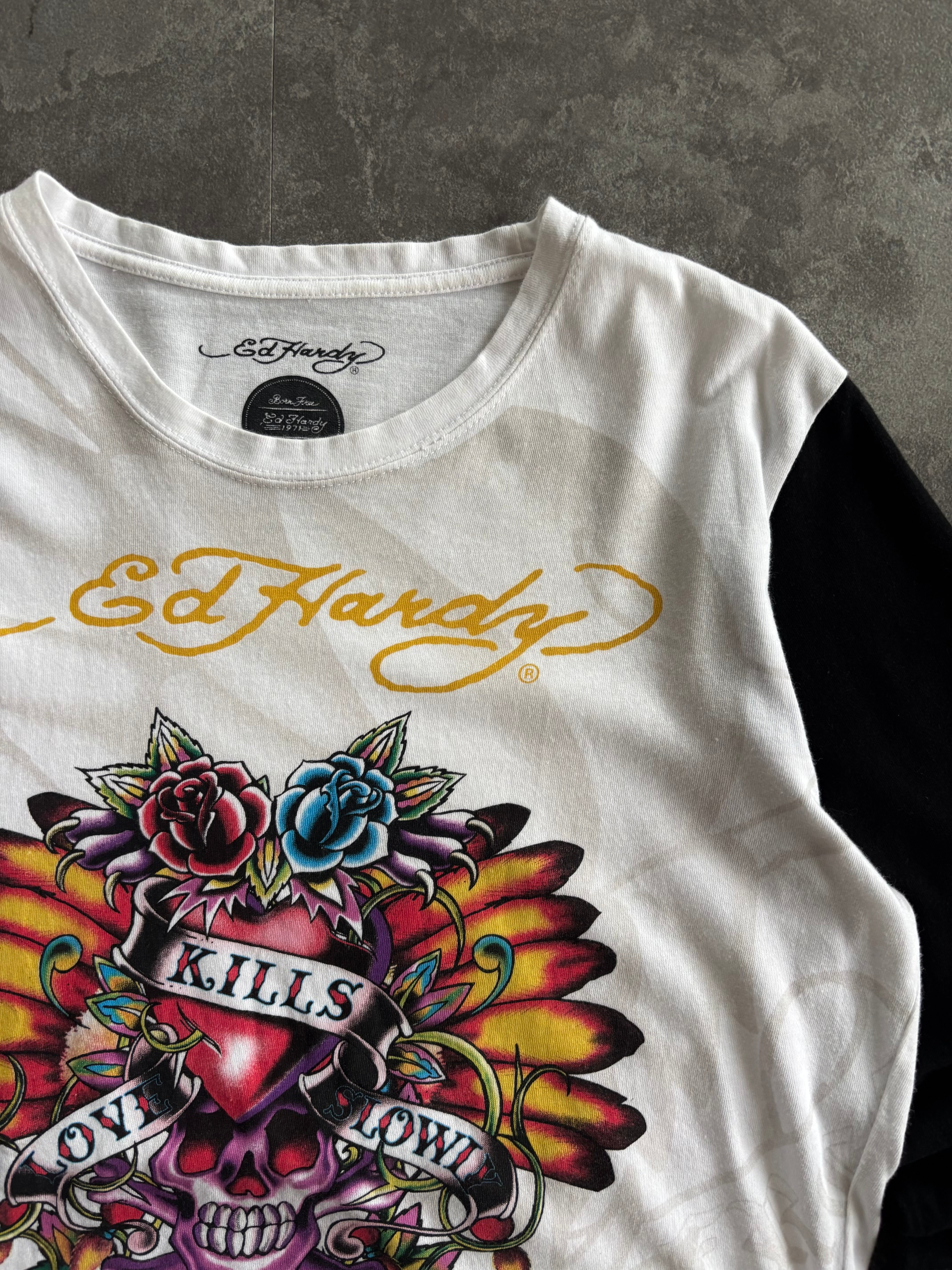 Ed Hardy Love Kills Slow Skull Wing Long Sleeve Tee